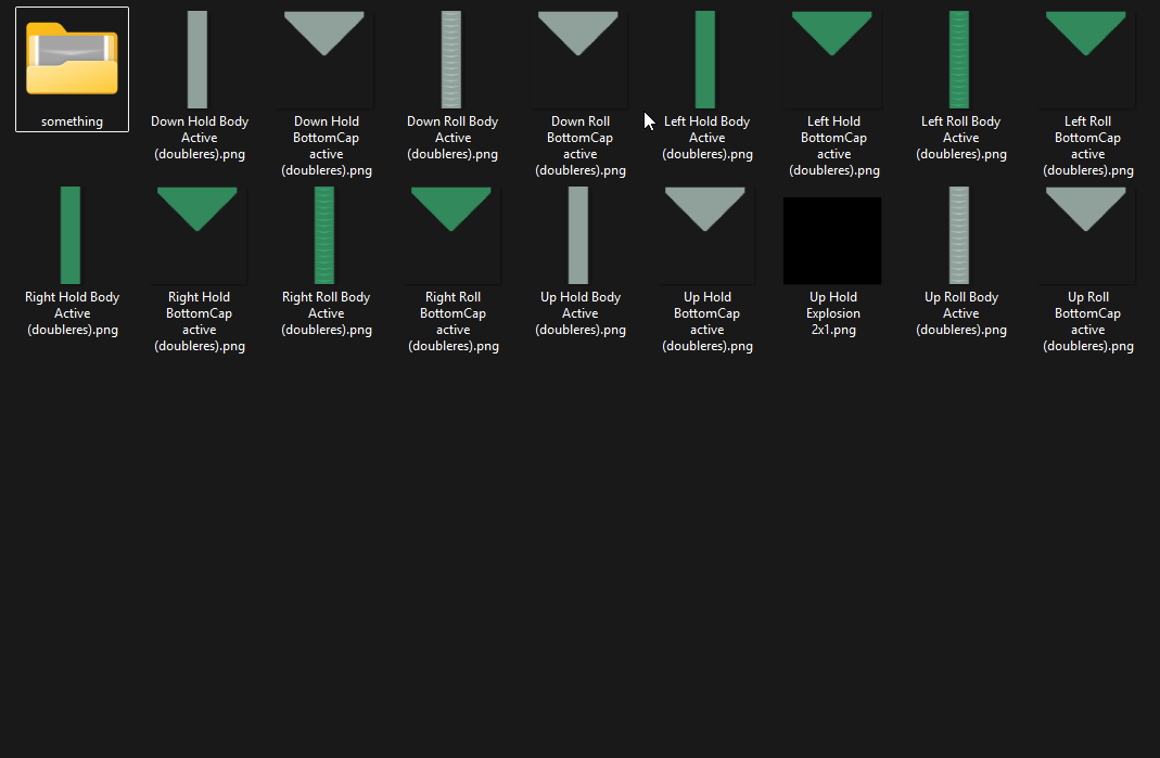 I’m curious as to how I can set the hold body image for each lane to have a different color. I’ve seen other skins that achieve this like the zinnia skin on the website or monheim’s etterna skin, but I cannot figure out how I can do it myself. I asked a similar question in the etterna discord server and I was told to rename the hold body images to Down Hold/Roll Body, Left Hold/Roll Body, etc., as shown below, but it didn’t change anything. If it helps, I modified myuka’s etterna arrow skin.