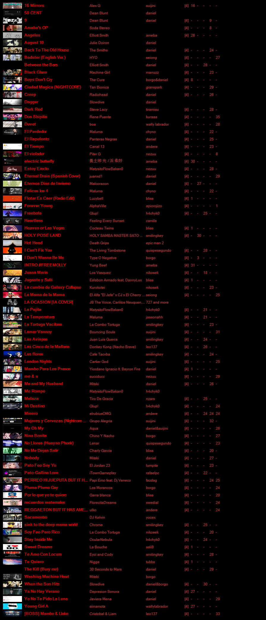 i cant say with words how grateful i am to all the people who gave me permissions and place their charts in here, it took me a lot of time to do this all by myself and probably couldnt make it possible without the help of borgo and suijini, i love both of you